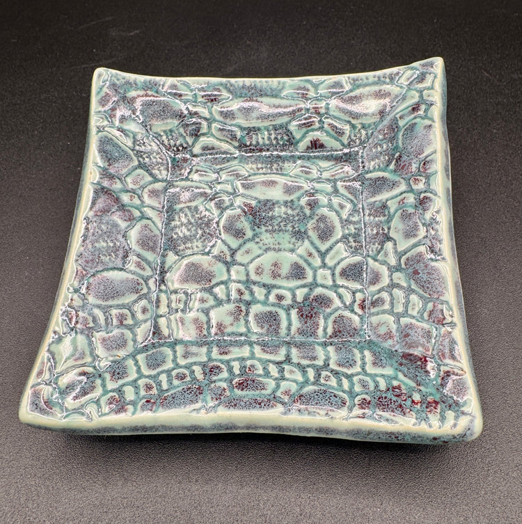 Add some colorful charm to your home with our Beautiful Trinket Dish! The unique combination of green, red, and purple glazes creates a stunning aesthetic that will elevate any space. Perfect for holding your precious trinkets or simply as a decorative piece. (Note: Not just a pretty dish, it's also functional!)