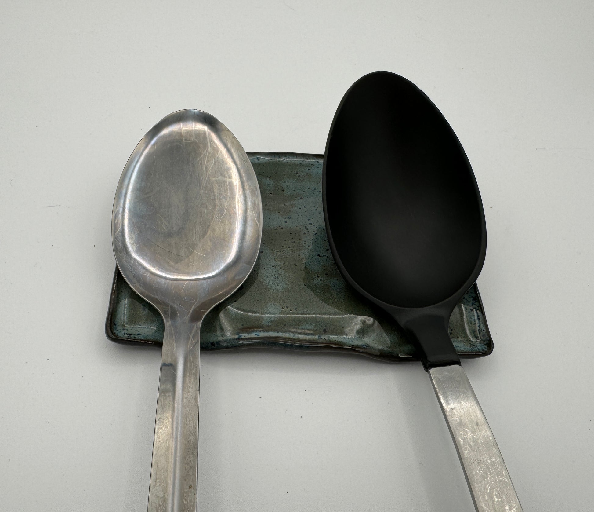 Say goodbye to messy countertops with our Double Spoon Rest! This quirky denim blue spoon rest not only adds a pop of color to your kitchen, but it also holds not one, but two spoons at a time! No more juggling hot spoons or leaving them on the counter. Keep things clean and organized with this playful and practical kitchen accessory.