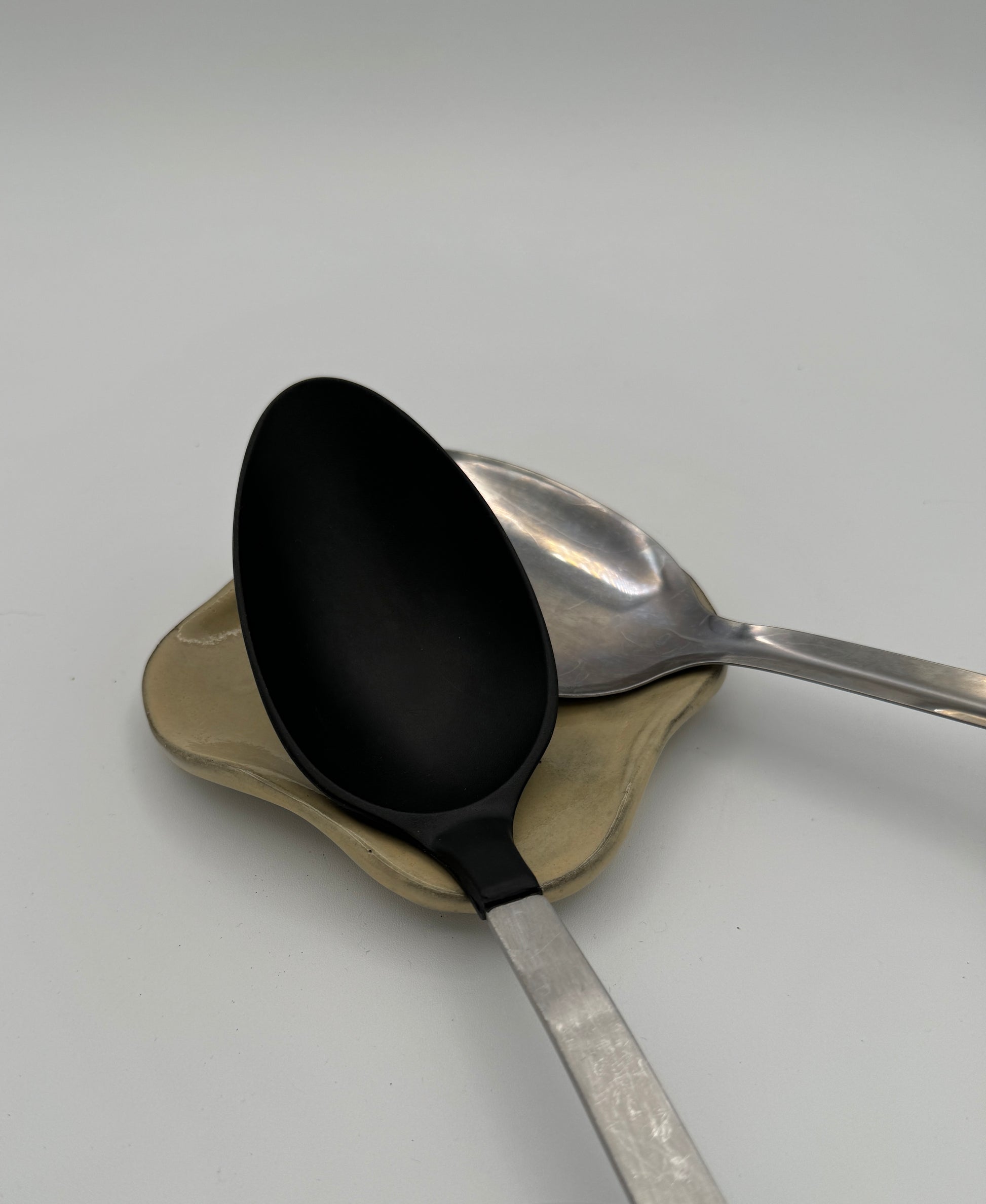 Say goodbye to messy countertops and hello to a buttery brownish spoon rest! Keep your countertops clean and your spoons in place with this quirky and fun kitchen accessory. Because every spoon needs a little rest (get it?). Will hold two.